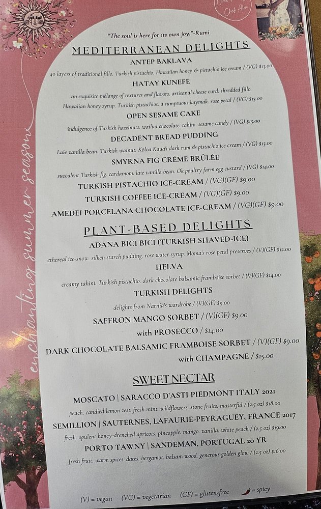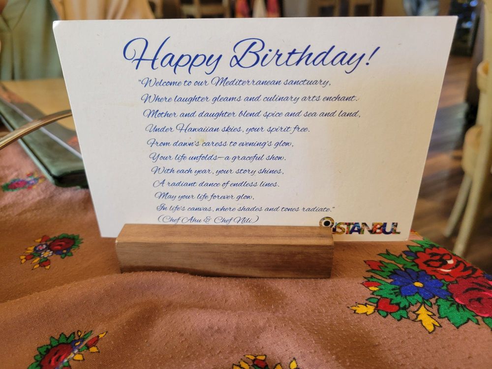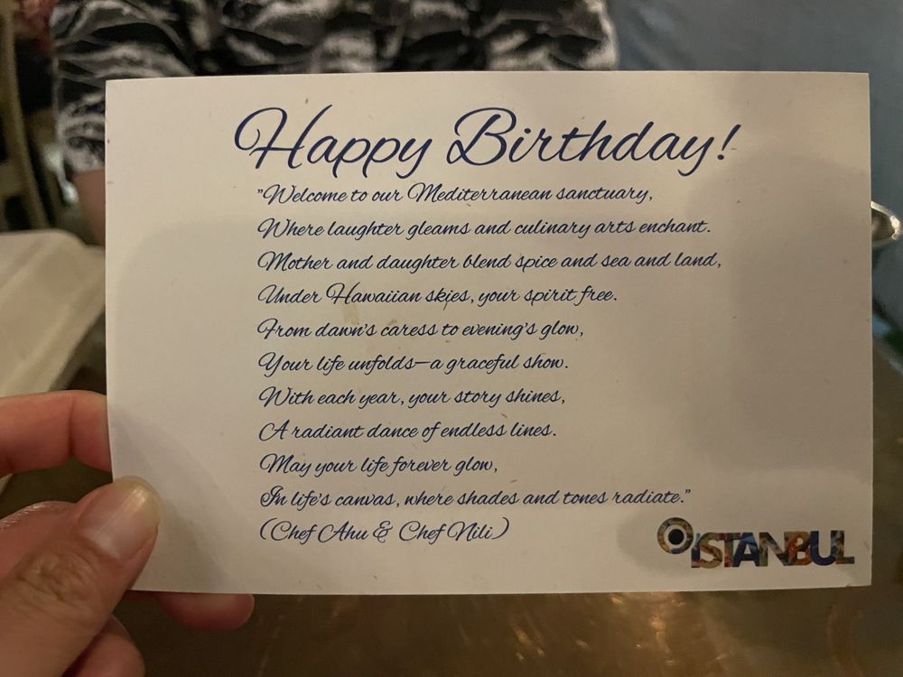 Introducing Istanbul Hawaii, a Middle Eastern-Mediterranean gem in Honolulu, offering a rich culinary experience. With a diverse menu that caters to vegans and vegetarians, Istanbul Hawaii stands out for its soul-warming lamb shank and flavorful Meze Platter. The ambiance is a perfect blend of casual and upscale, with attentive staff and memorable dishes like Ratatouille, Octopus, and Zeytinyagli Barbunya. The restaurant's commitment to sustainability, offering compostable containers and reusable tableware, adds an extra layer of respect for the environment. The reviews highlight not just the food but also the welcoming atmosphere, making Istanbul Hawaii a must-visit for special occasions or a casual dining experience. Don't miss out on their unique drinks and the pupu platter for a truly delightful dining experience.
